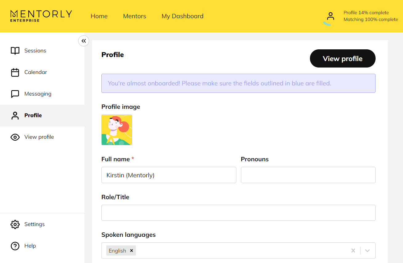 Once you've completed your onboarding, you will be brought to your Mentorly personal dashboard.