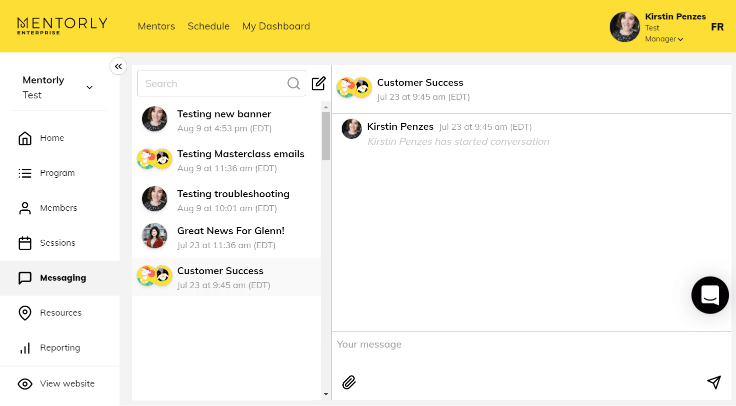 Mentorly Messaging is a helpful tool discuss your sessions or even share news and files - it keeps all the communication in one place on the platform!