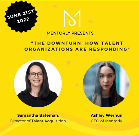 The Downturn: How Talent Organizations are Responding” with Ashley Werhun, CEO of Mentorly and a special guest, Samantha Bateman (She/Her), Director of Talent Acquisition and founder of Integria.