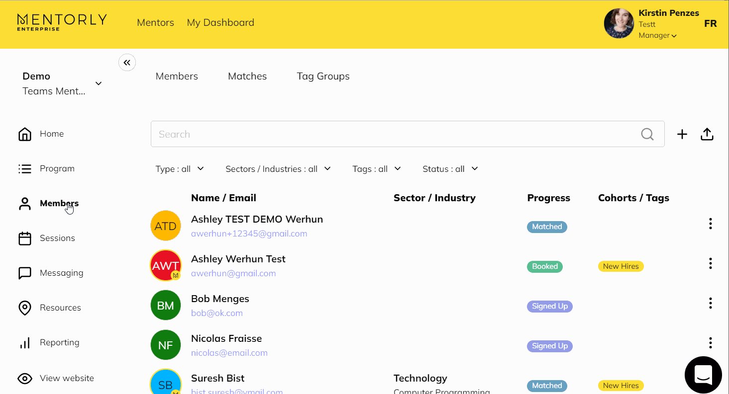This method is ideal if you already have a set list of members you want to have in your mentorship program. You can either add a new member individually, or multiples at a time.