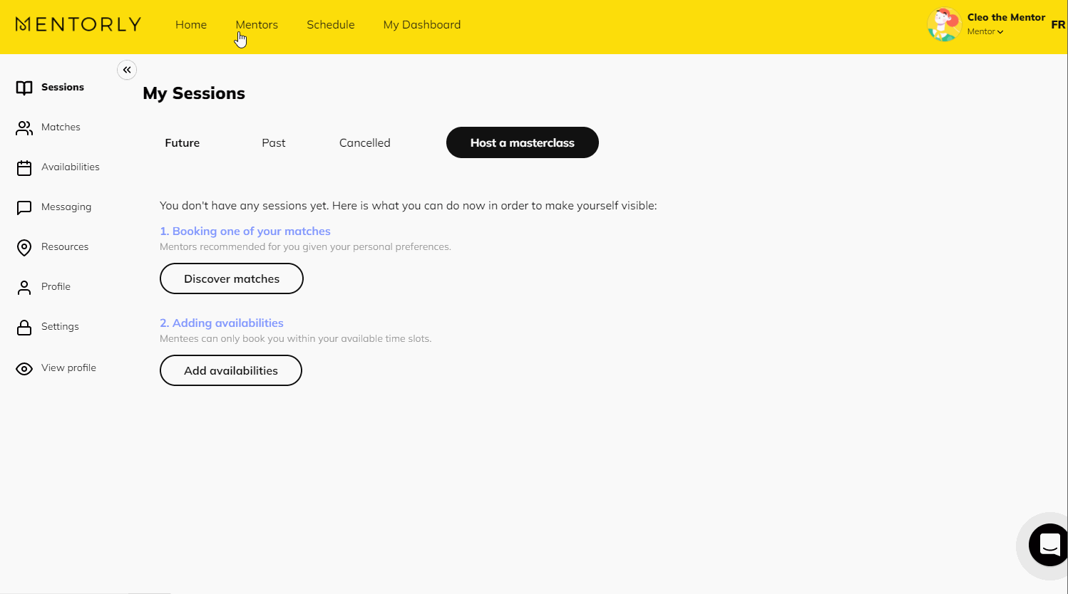 If you do not have an MSA, contact the Mentorly support team by going to the Help tab found on your personal dashboard and clicking Go to Live Chat.