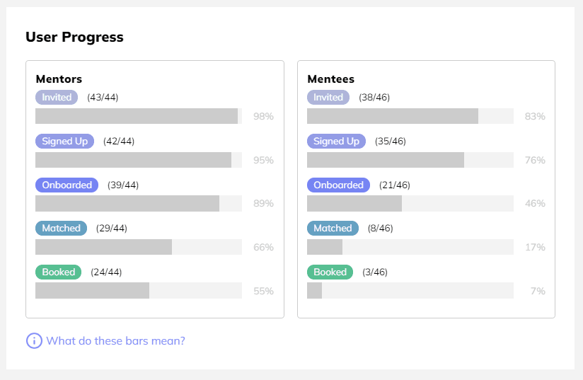 Good to know: Your program may not require mentors and mentees to be matched, and that's okay! You can simply disregard that progress bar if this is the case.