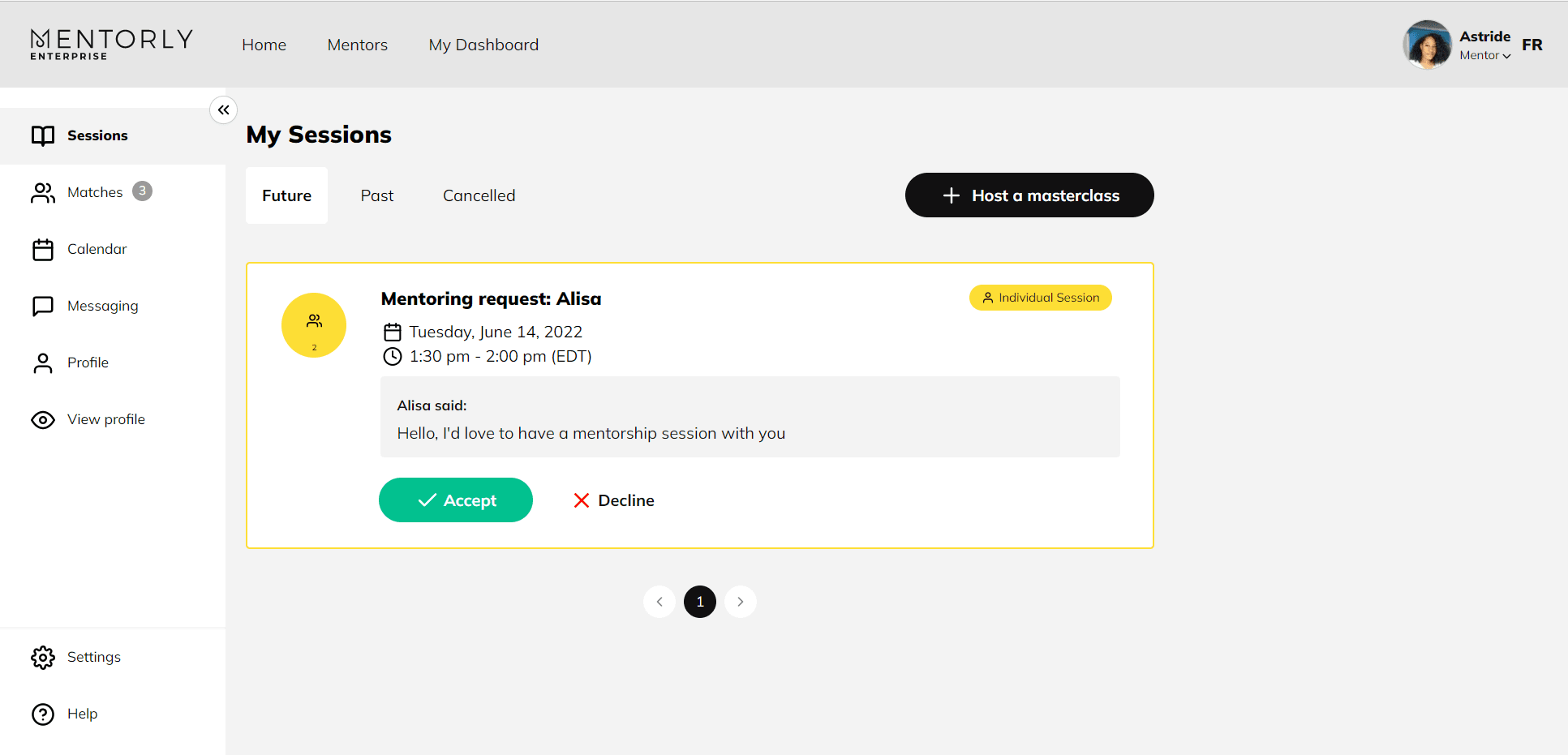 Yes, sessions are not automatically confirmed. Even if it's an availability that's been booked by the mentee, the session is not automatically accepted. To accept a booking, head over to your sessions tab, and click on Accept or Decline.